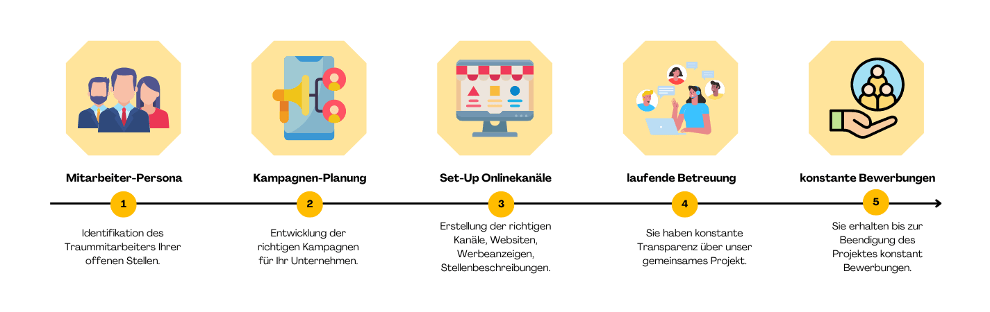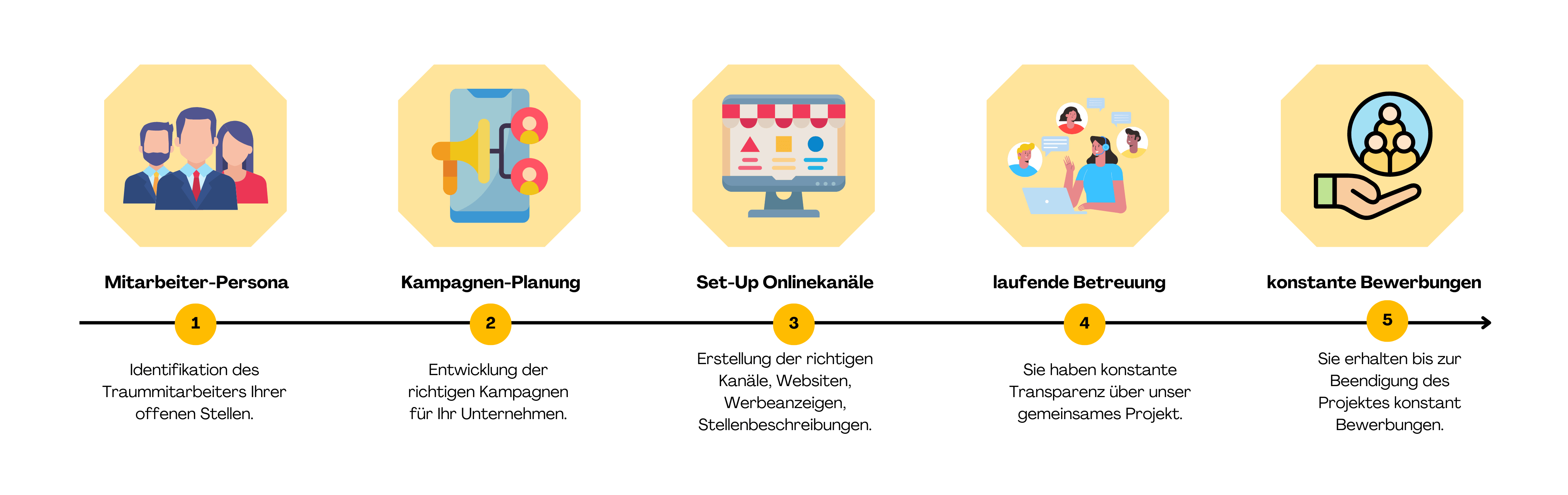Durch die Recruitingmaßnahmen fanden über 500 Personen neue Arbeitsstellen in deutschen Betrieben. Mit unserem jetzigen Team von über 15 ExpertInnen in Recruiting, Marketing und Headhunting ermöglichen wir Ihnen die